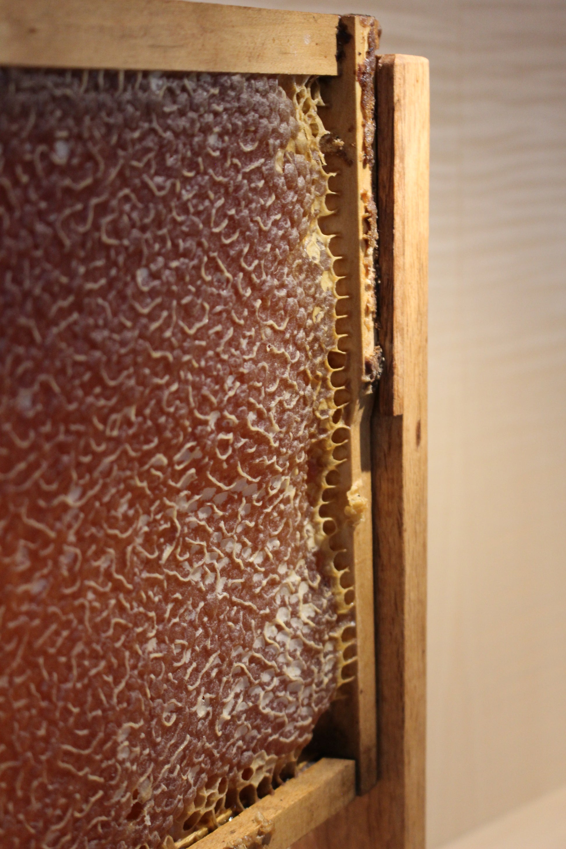 In the Australian bush, our Red Bloodwood tree blooms in creamy white flowers in the late summer and combines with a unique resinous kino for a balance of sweetness and medicinal strength. In hive ageing of honey allows optimal temperature for maturation through the ripening period. This wild honeycomb is then hand pressed and sealed for a rich complexity of pollen, royal jelly and propolis.